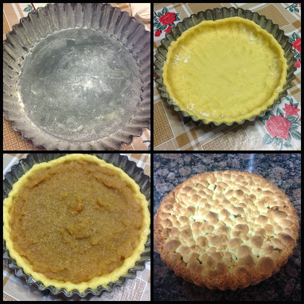 Cogemos el resto de la masa y con un rallador, rallamos por encima de la compota y lo metemos al horno a 220 ºC hasta que tenga un bonito color dorado mas o menos 15 min.