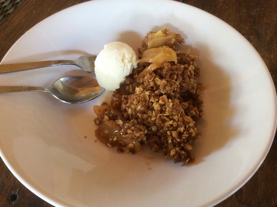 Se mezclan los otros ingredientes se ponen por encima de las manzanas.
