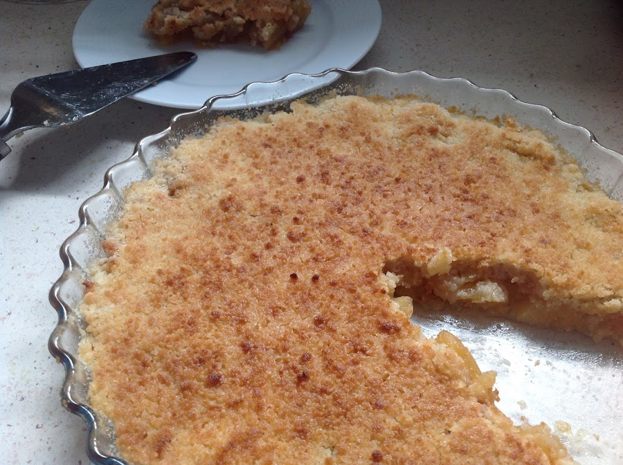 El apple crumble, o "crumble" de manzana, es un postre típico anglosajón que, aunque no lo sea, podría parecernos una receta de aprovechamiento, ya que, no sólo podríamos hacerlo con manzanas sino con cualquier otra fruta que nos vaya a poner "fea" o que haya madurado ya mucho, como melocotones, ciruelas, peras...