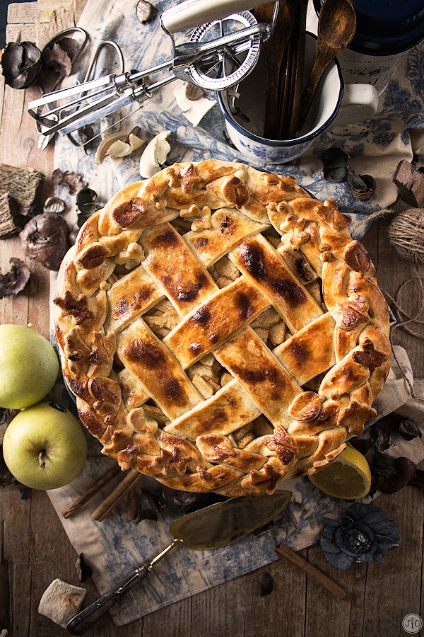 Lo más típico de esta Apple Pie o Tarta de Manzana americana es su base, esa masa quebrada con la que luego se forma un enrejillado con el que cubrimos las manzanas. Yo he formado esa especie de reja, pero seguro que vosotros con vuestra imaginación hacéis cosas maravillosas con acabados fantásticos, ¡seguro!
