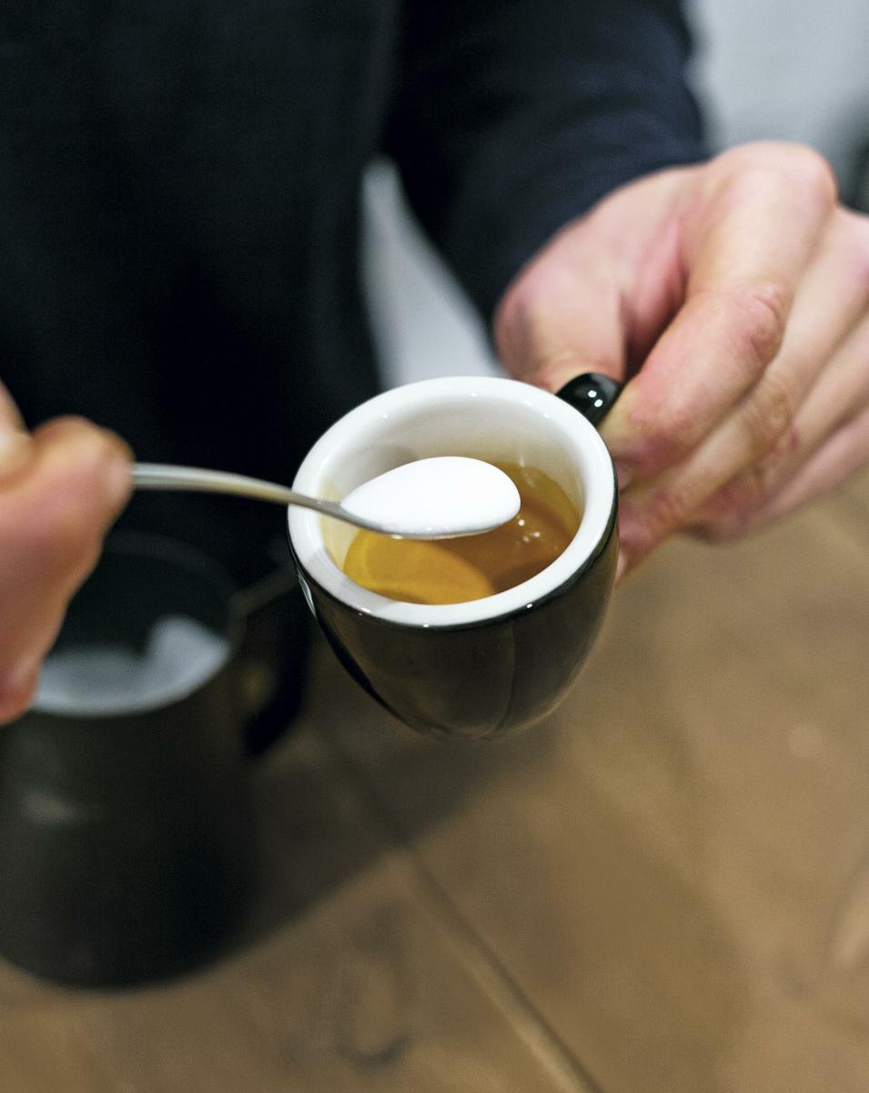 Agita bien fuerte para disolver el azúcar en el café.