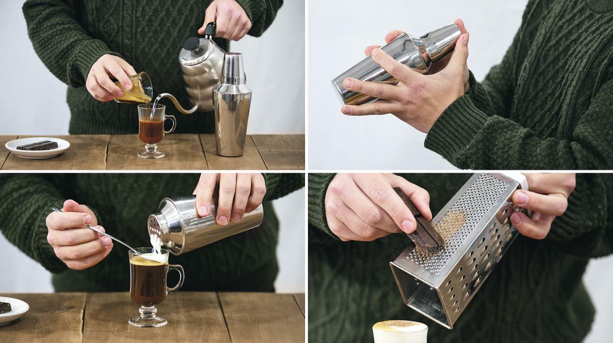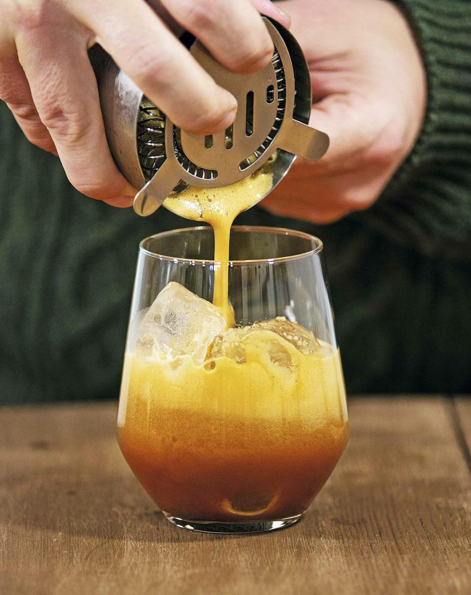 Es la bebida fría a base de espresso por excelencia, atractiva a la vista y muy fácil de preparar en una coctelera. Se puede combinar con jarabes de azúcar con diferentes sabores e incluso hacer un cóctel mezclándola con tu licor favorito. Puedes preparar el jarabe de azúcar calentando y mezclando en una sartén dos partes de azúcar con una de agua. También puedes usar azúcar granulado, pero tienes que disolverlo en el espresso antes de verterlo en una coctelera. El shakerato se puede preparar un espresso solo, pero Kim aconseja usar un espresso doble para mantener más el sabor a café, sobre todo cuando está diluido con el hielo.