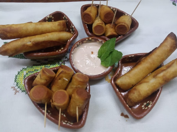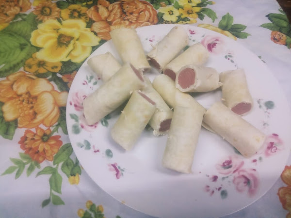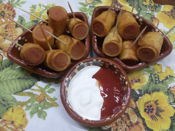 Si lo prefieres puedes enrollar las salchichas en la tortilla y dejarlas enteras para que se convierta en un taco. Fríe de la misma forma y acompaña con aderezo.