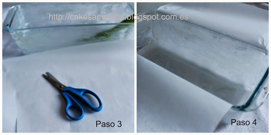 En mis inicios reposteros, también cortaba tiras de papel de hornear y las colocaba en los lados cortos. Con el tiempo me he dado cuenta que no es necesario, no obstante, si queréis lo podéis hacer. La masa no se queda pegada si el cake está bien horneado. Y lo podéis desmoldar igual de bien.