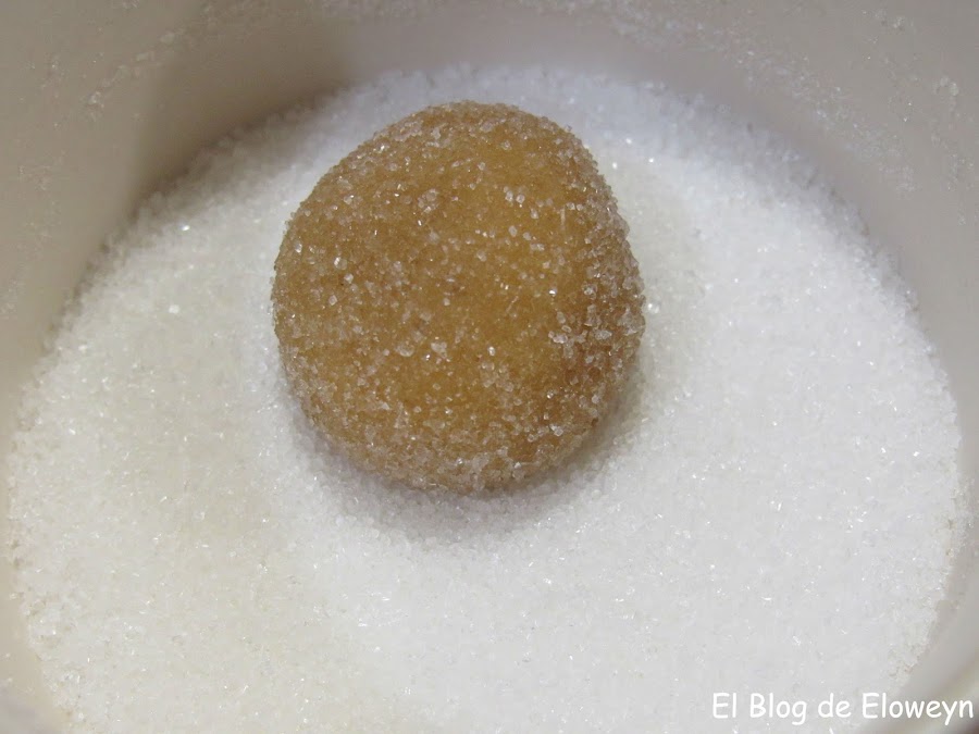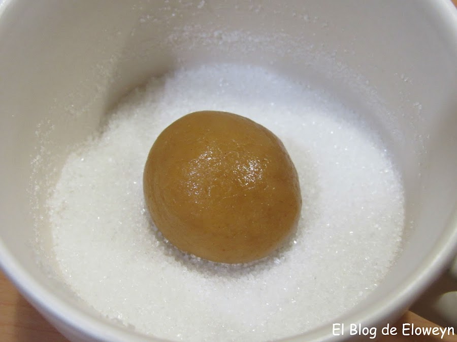 Vamos moviendo la taza haciendo movimientos circulares (No seáis brutos... ¡¡¡De arriba a abajo NO!!!, horizontalmente... jajaja). De esta forma, la bolita de masa se va rebozando ella sola y no gastamos tanto azúcar.