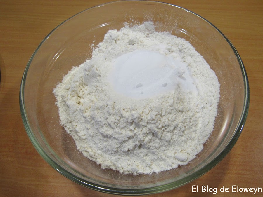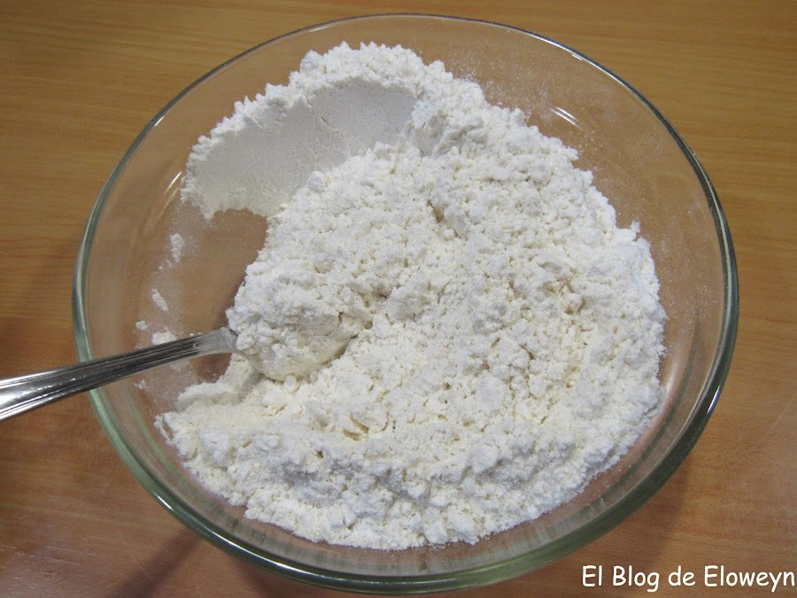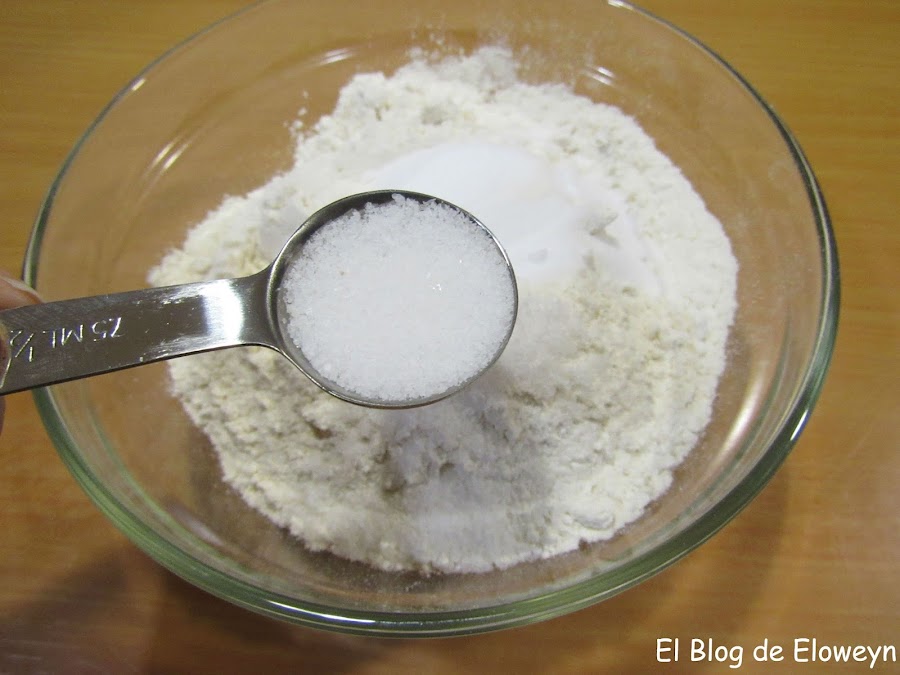 Mezclamos la harina, el bicarbonato y la sal con una cuchara.