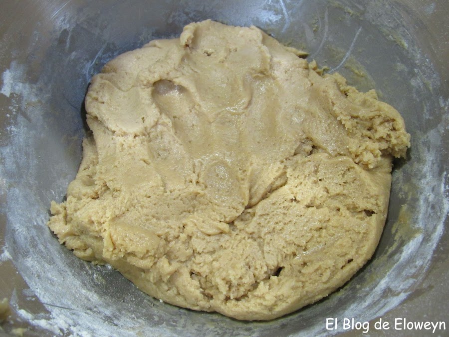 Tiene que quedar una masa un poco aceitosa que no se pegue en las manos al presionarla. Si veis que se os continúa pegando y habéis puesto toda la harina, añadid un poquito más y removed hasta integrarla.