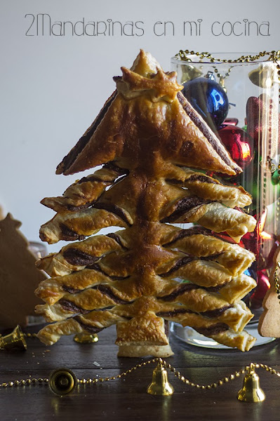 2. Con un cortapastas o cuchillo recortamos en hojaldre en forma de árbol de navidad.