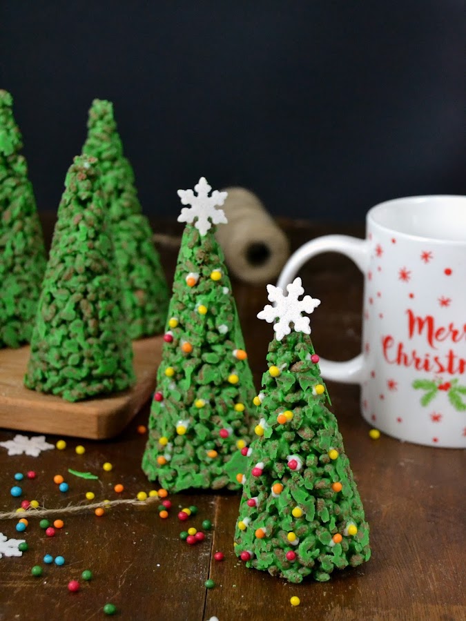 Cómo preparar los árboles de navidad de chocolate blanco y arroz inflado