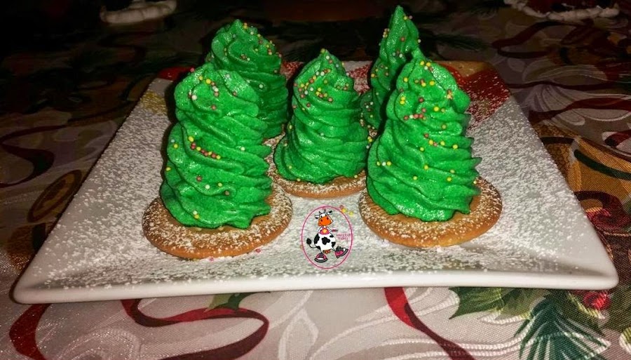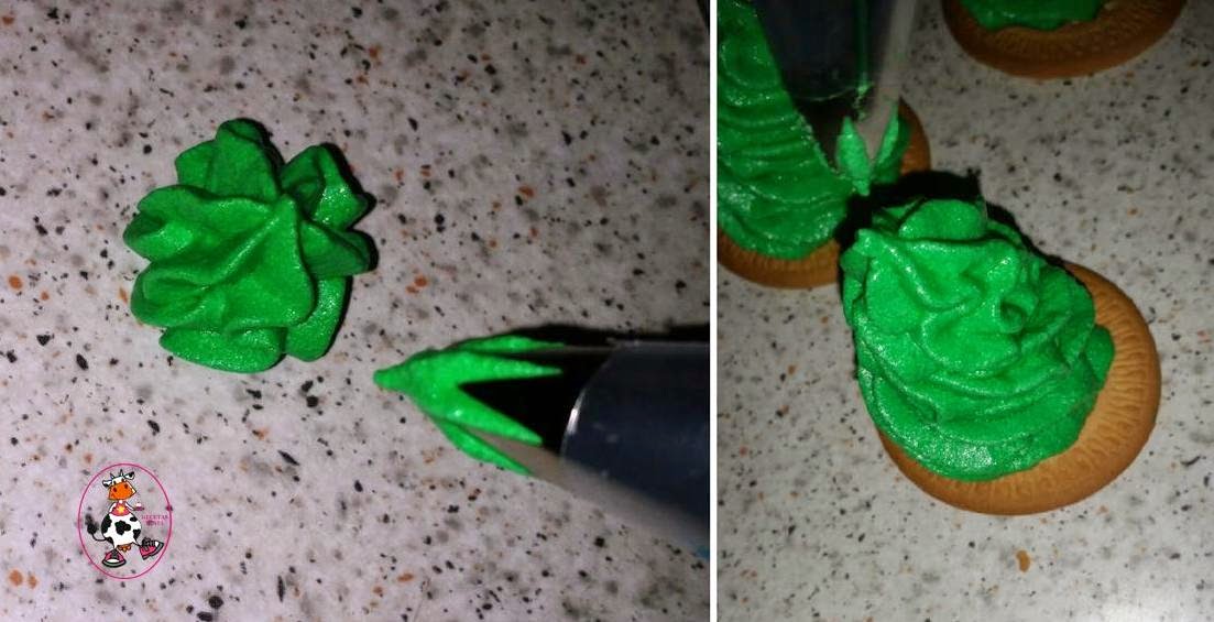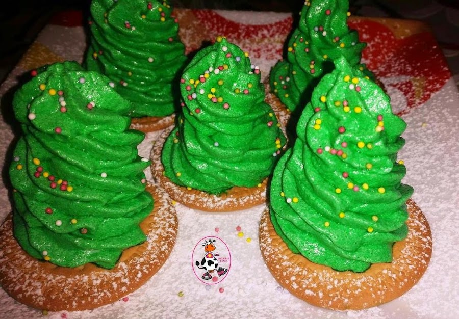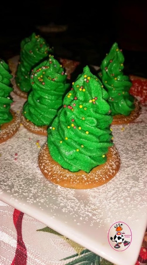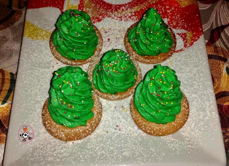 Y hacemos nuestros arbolitos encima de una galleta maría.
