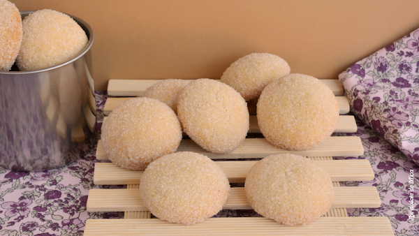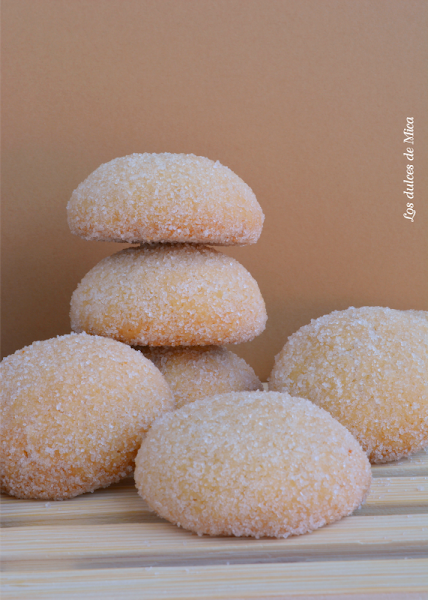 Sacamos del horno, esperamos a que se templen un poco y rebozamos en azúcar.