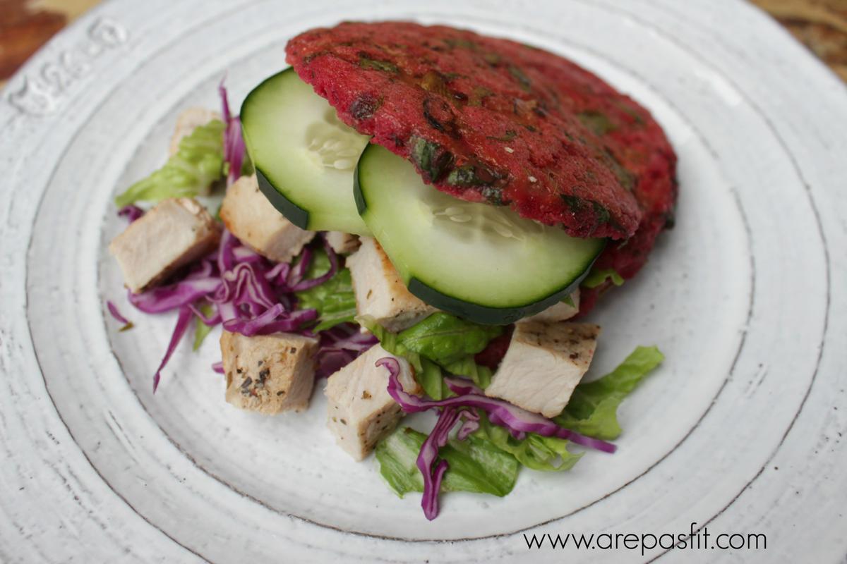 Arepa de Remolacha, Kale, Acelga, Cilantro, Cebollín y Pimentón
