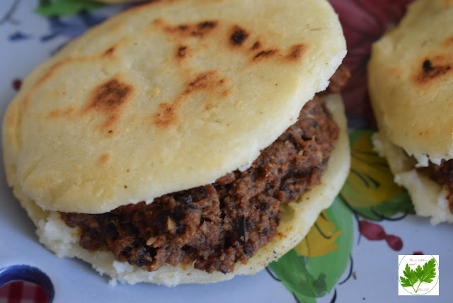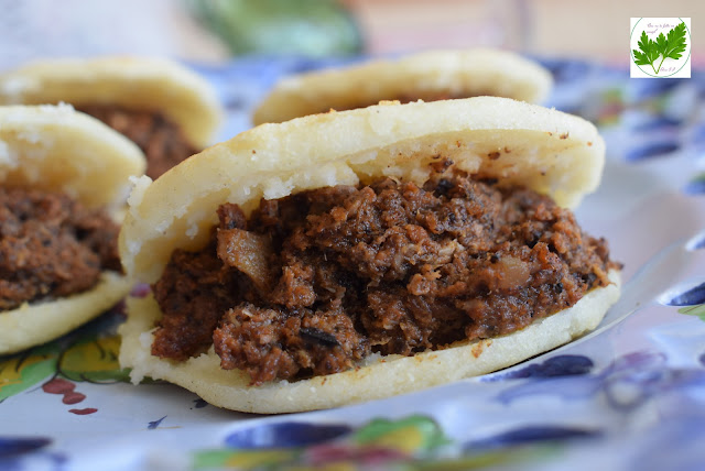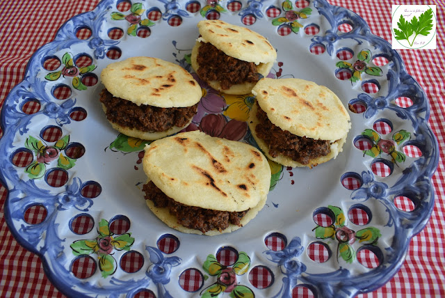 Como realmente ésta es una receta de aprovechamiento, pues la carne procede del resto de un cocido, una "arepa" está reservada para mi amiga Marisa, ya la imagino haciendo hueco en la mesa para colocarlas. Gracias Marisa, siempre es un placer estar en 1+/- 100 Desperdicio 0.