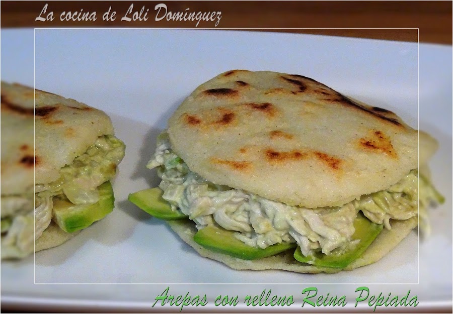 Arepas con relleno Reina Pepiada. Las arepas se preparan con harina de maíz precocido, son muy típicas en Venezuela y también en Colombia aunque son muy conocidas en toda sudamerica, vamos a hacerlas a la plancha, pero también se pueden hacer al horno o fritas y se pueden rellenar de lo que más nos guste, pero hoy las prepararemos con el famoso relleno Reina pepiada. La Reina pepiada es la arepa más famosa de Venezuela, el origen del nombre se remonta al año 1955 cuando la modelo venezolana Susana Dujim ganó el certamen de Miss Mundo.
