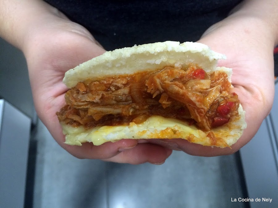 Cuando estén con ayuda de un paño se abren en caliente y se rellenan de la carne y queso rallado y a comer.