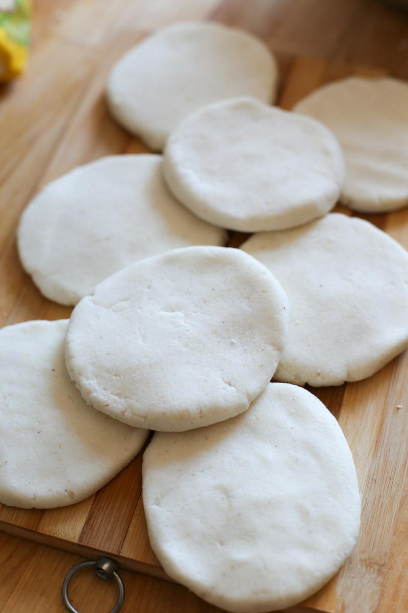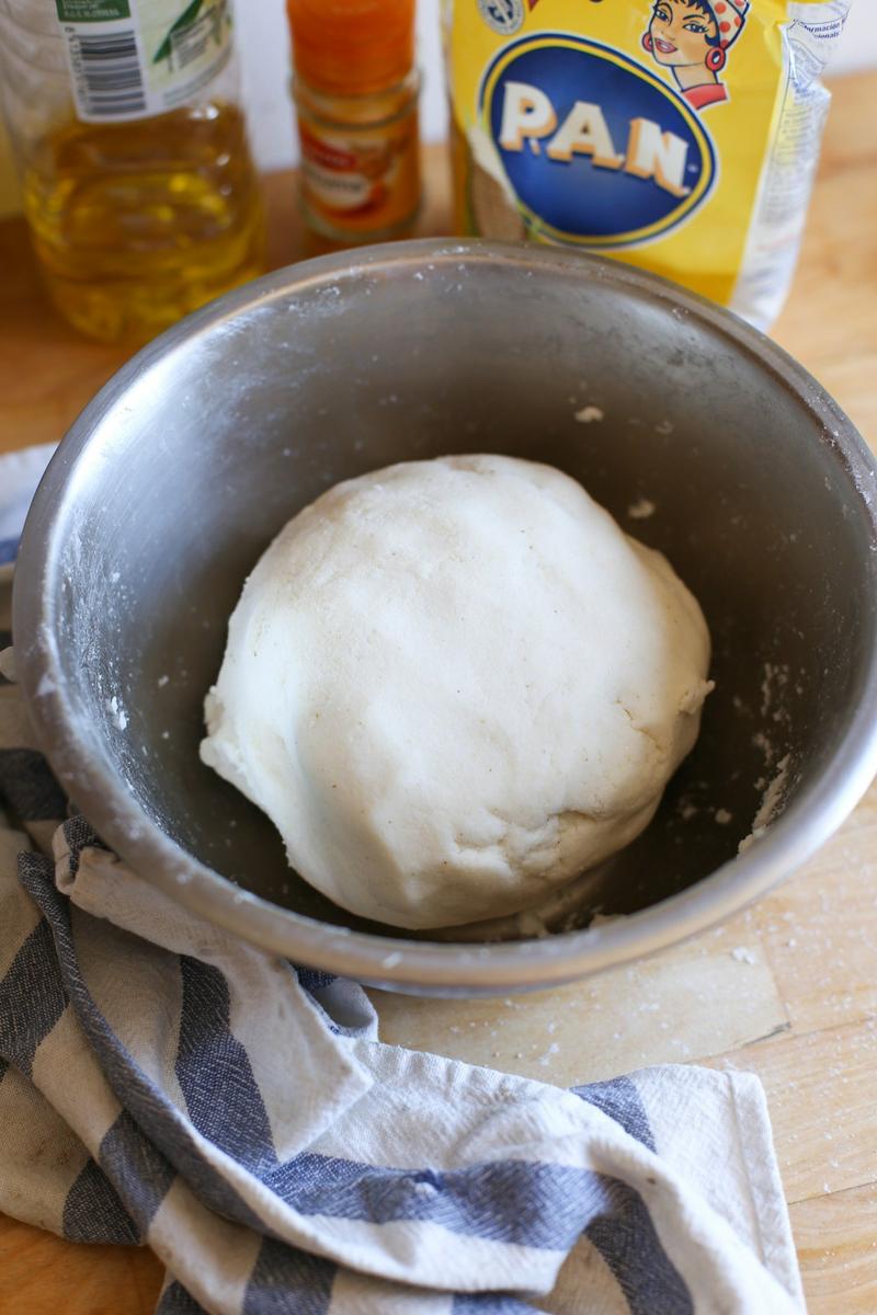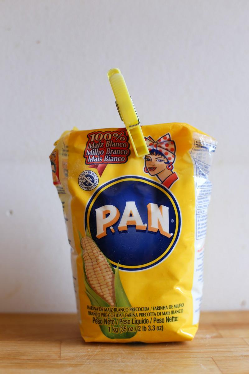 *Recomiendo usar la harina de marca PAN, si no la encuentras fijate que sea harina de maíz blanco precocida.