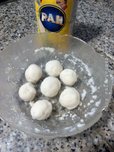 He de decir que aunque la preparación es muy sencilla, he tenido que repetirla hasta coger el punto, nunca había probado la harina de maíz y eso es un problema para saber como tiene que quedar, por tanto optamos por seguir los consejos de la harina, nosotros hemos usado esta la harina de máiz blanco PAN.