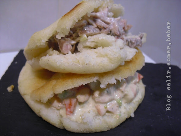 hoy seguimos con cocina internacional y desde desafío en la cocina nos proponen unas arepas, plato típico en Colombia, Panamá o Venezuela. Investigando por la red hemos podido comprobar que de entre todas las arepas, la más típica en Venezuela es la reina pepiada cuyo relleno está hecho a base de aguacate, cebolla, pollo deshuesado, aceite de maíz... vamos una delicia que he prometido probar en algún restaurante típico... Por cierto si alguien sabe de algún restaurante bueno para probar arepas por Valencia, por favor, decirmelo!!!