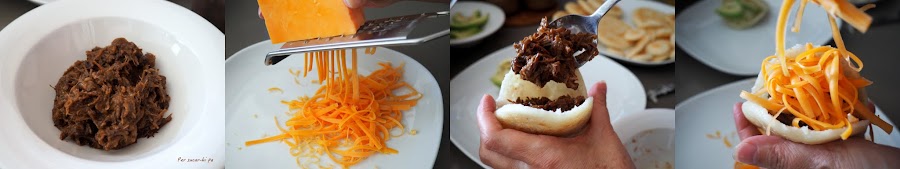 Nosotros hemos aprovechado un guiso de rabo de toro, desmenuzando la carne y mezclándola con sus verduras y su salsa reducida (podéis ver la receta haciendo clic aquí).