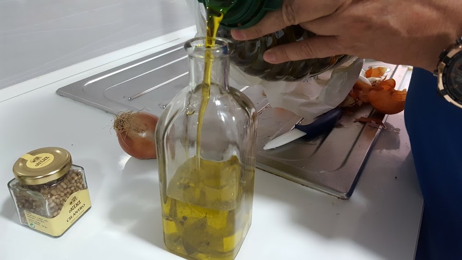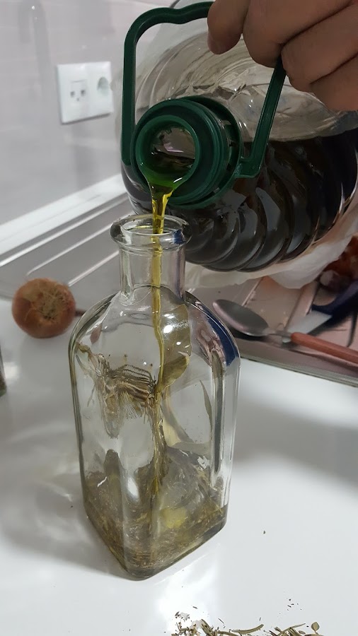 2.- Llenamos la botella de aceite y dejamos reposar 24 horas.