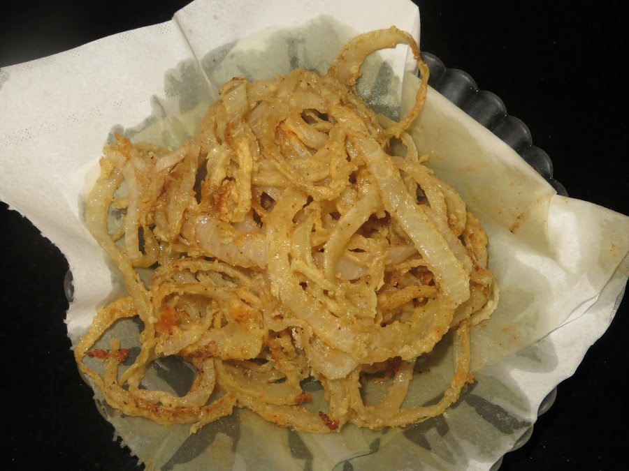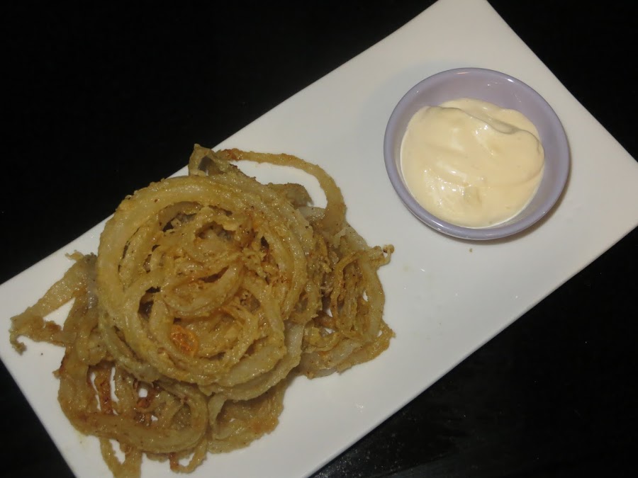 Finalmente, ponemos una sartén con gran cantidad de aceite y los vamos friendo por tandas, hay que dejarlos varios minutos por cada lado hasta que están dorados para que cojan una textura crujiente. Luego se sacan a un papel absorbente y listos para degustar, los podéis acompañar con la salsa que más os guste, en el restaurante lo sirven con barbacoa, aunque yo preferí mayonesa casera.