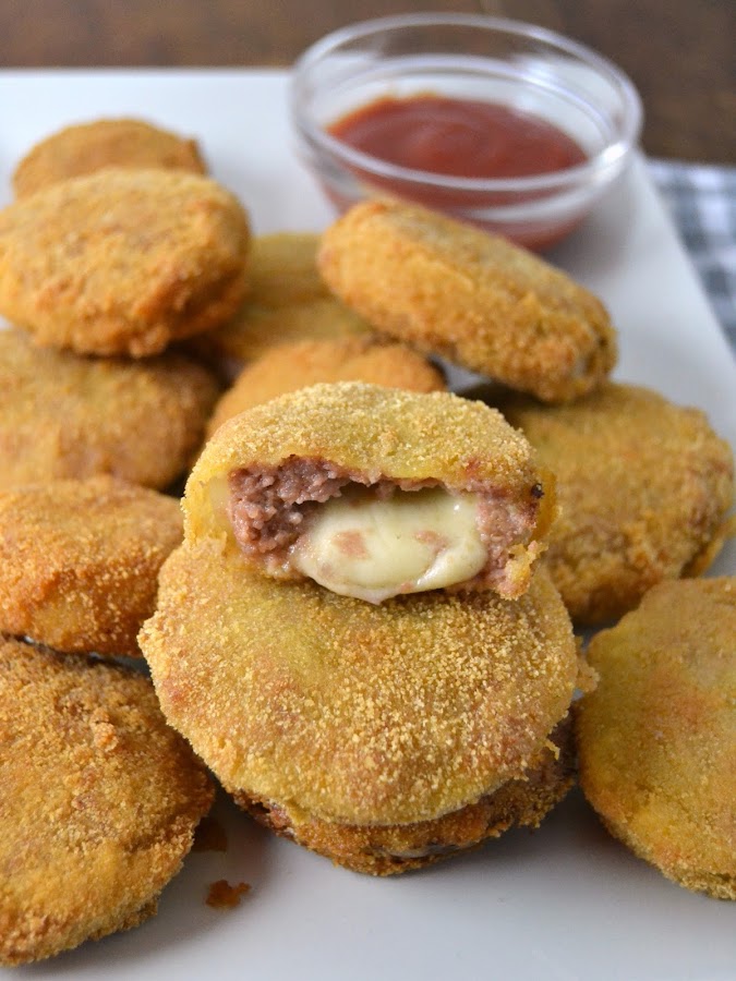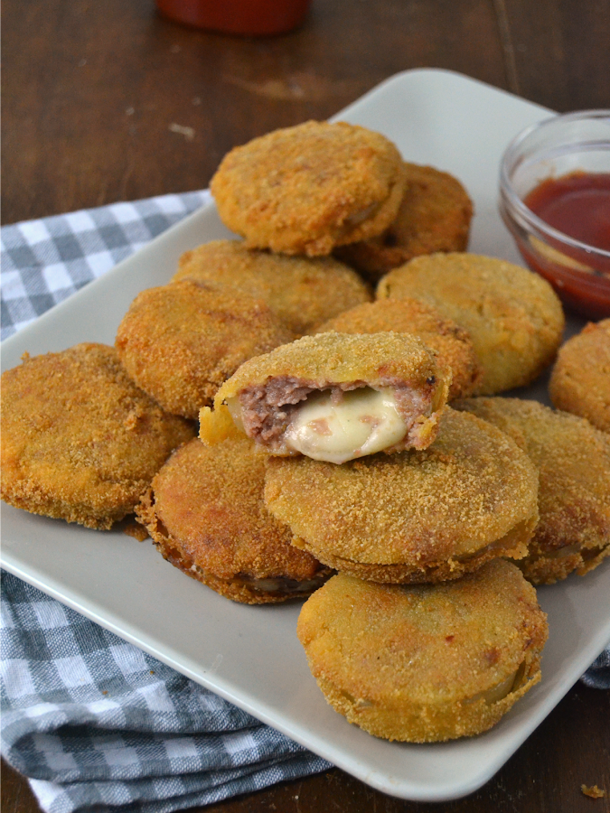Crujientes por fuera, la carne bien sazonada y el queso fundido que le da esa jugosidad a cada bocado ¡Irresistibles! Seguro que si probáis estos aros de cebolla rellenos de carne picada me dais la razón