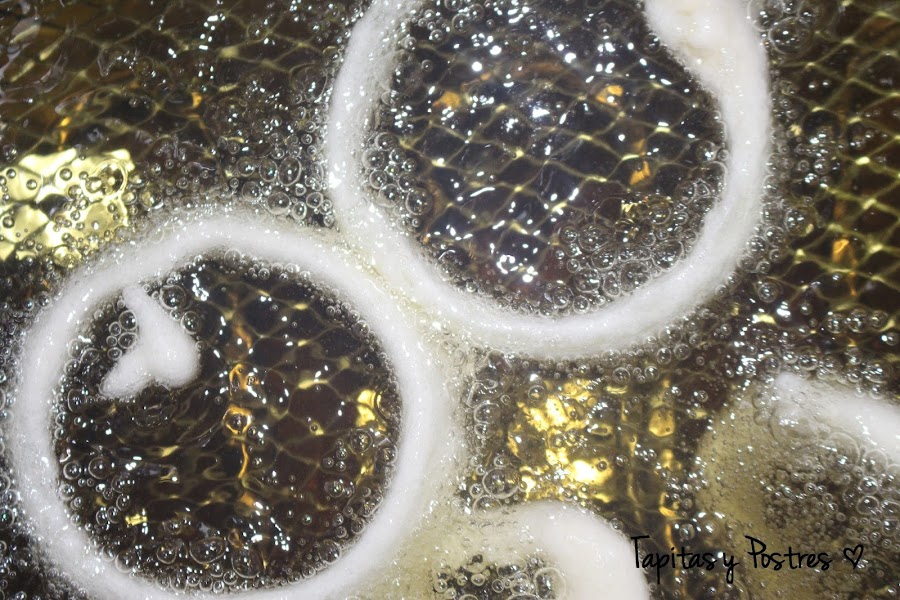 Y freímos en abundante aceite caliente. Yo lo hice en freidora.