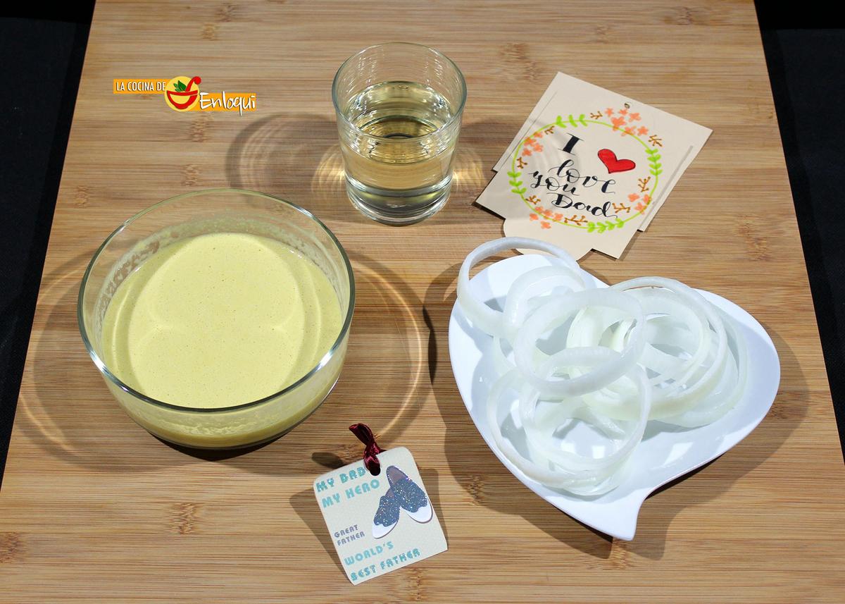 Para continuar debes cortar la cebolla en aros, no cortes los aros demasiado gruesos pero tampoco muy finos. Un grosor intermedio estará genial.