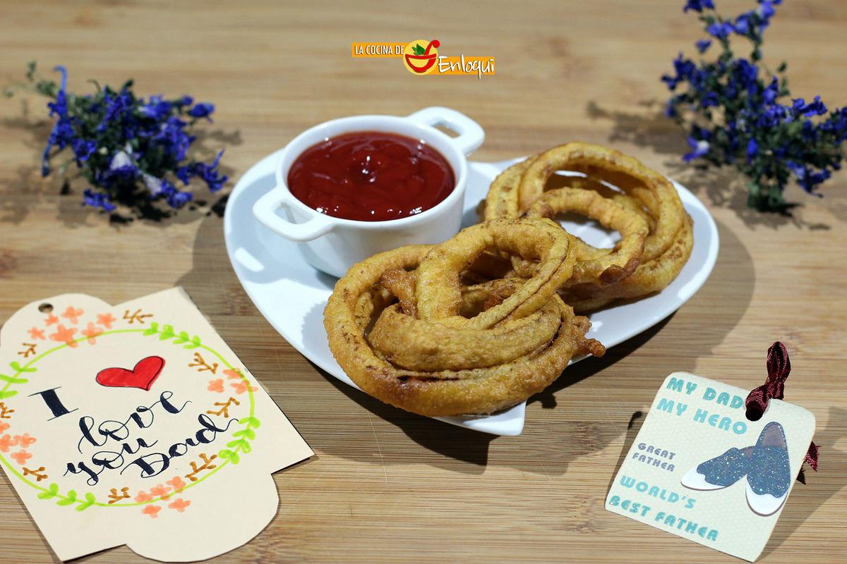 Si hay una receta de picoteo que me encanta esta es una de ellas. Los Aros de cebolla que vamos a preparar quedan muy ricos. Tienen un rebozado esponjoso gracias a la pasta orly y un sabor de 10. Acompaña con salsa barbacoa o la salsa que más te guste y disfruta del aperitivo!!En estos días celebraremos el día del Padre, si quieres sorprender al papá de la casa con un aperitivo delicioso esta puede ser una muy buena opción.