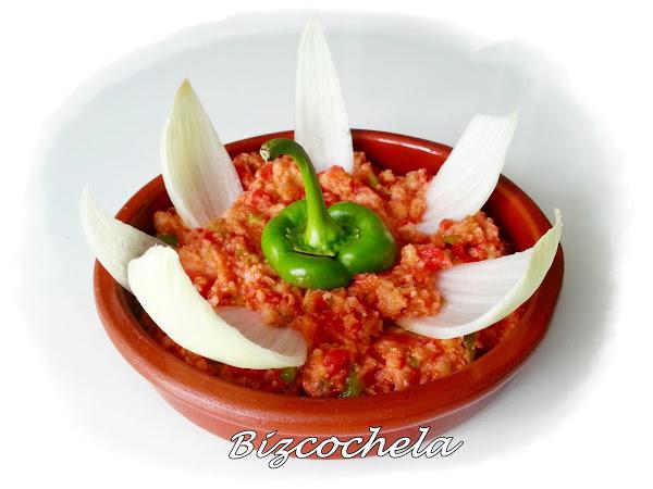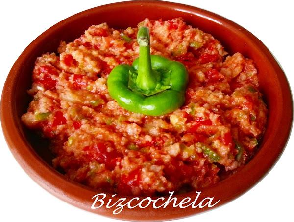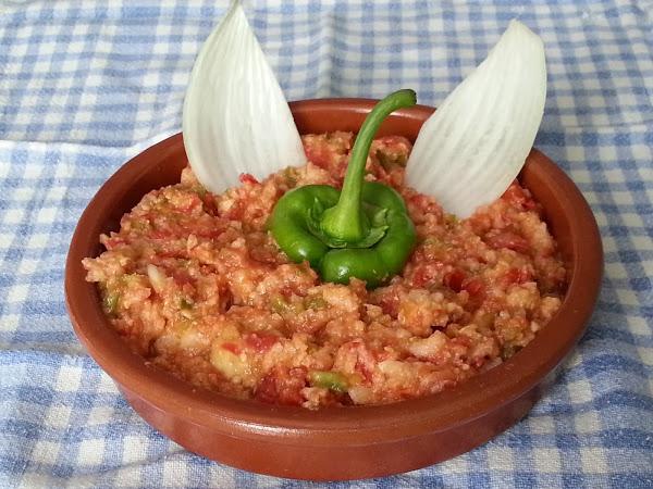 No es otra cosa que el "majado" de tomates, pimiento y ajo, y todo ello sin que quede triturado como una crema, deben quedar trocitos, que se vean a simple vista.