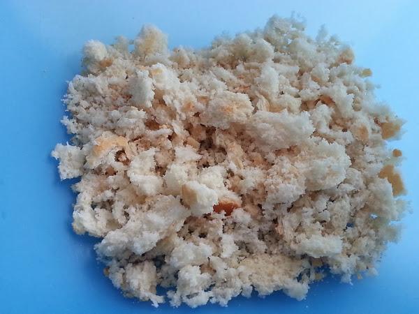 1. - Troceamos el pan y lo echamos en un bol o cazuela de barro y reservamos. Yo lo he triturado en la termo un par de segundos a velocidad 5, que queden trozos.