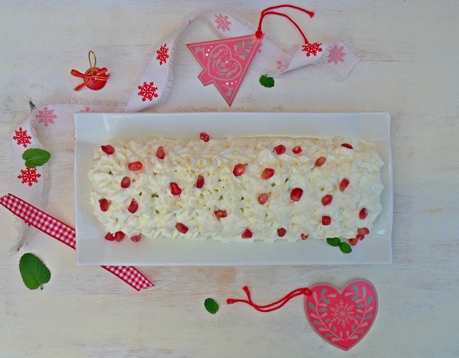 Montamos la nata (crema de leche) con azúcar glas y cubrimos el arrollado, decorando a nuestro gusto.