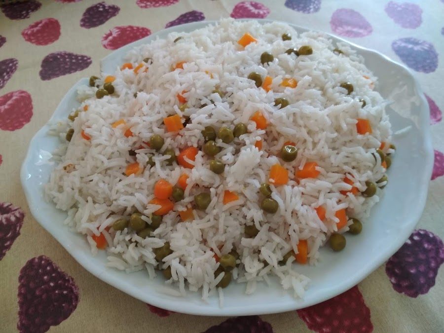 Para este arroz suelo usar la variedad basmati porque queda ideal, suelto y sabroso. El truco para que este arroz quede bien es hacerlo con antelación, que esté bien escurrido, de hecho yo lo hago el día anterior y lo dejo durante horas escurriendo en un colador.