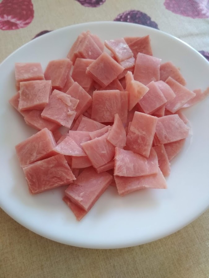 Lo primero que hago es hervir el arroz en abundante agua con una cucharadita de sal y una zanahoria cortada a taquitos pequeños. A mitad de cocción le añado la lata de guisantes, yo suelo utilizar el tamaño más pequeño que tiene Bonduelle (65 grs. de peso escurrido). Cuando está listo se pone en un colador grande y se deja unas horas para que quede bien escurrido.
