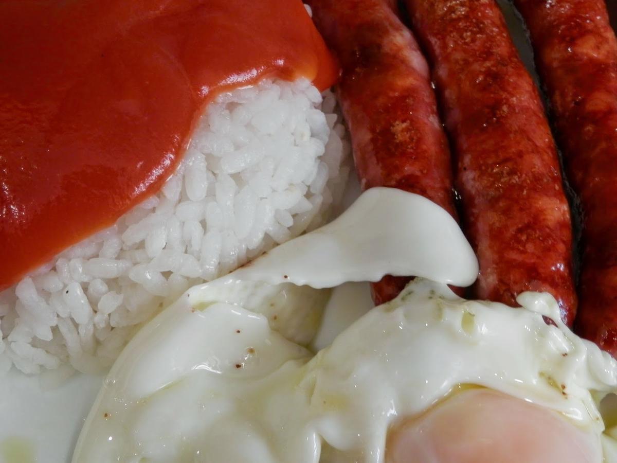 Hoy, en el blog, arroz a la cubana.Para cuatro personas