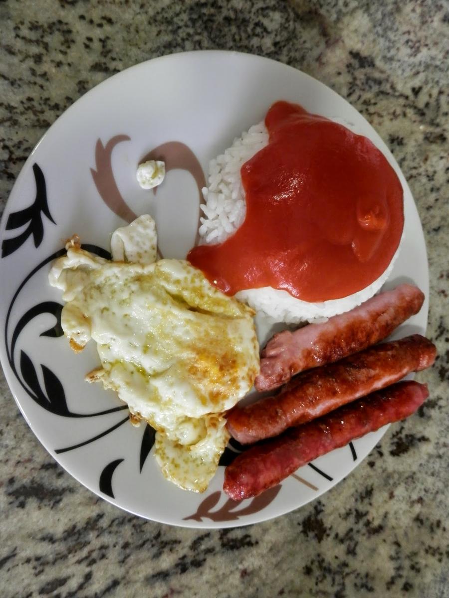 Mientras se está cociendo el arroz, freímos las salchichas.