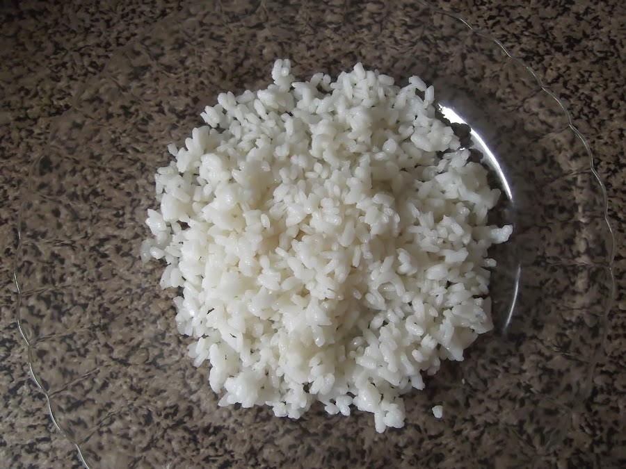 Lo primero que hacemos es cocer el arroz. Para ello tenéis que poner en un cazo con agua un poco de sal y un chorro de aceite, una vez que el agua rompe a hervir, echáis el arroz y lo dejáis 20 minutos.