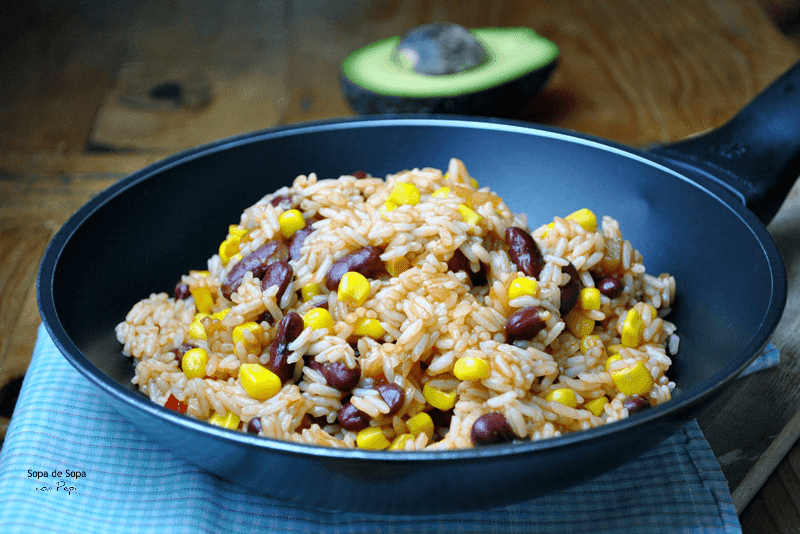 Para servir poner una porción de arroz en los platos y repartir los dados de aguacate por encima.