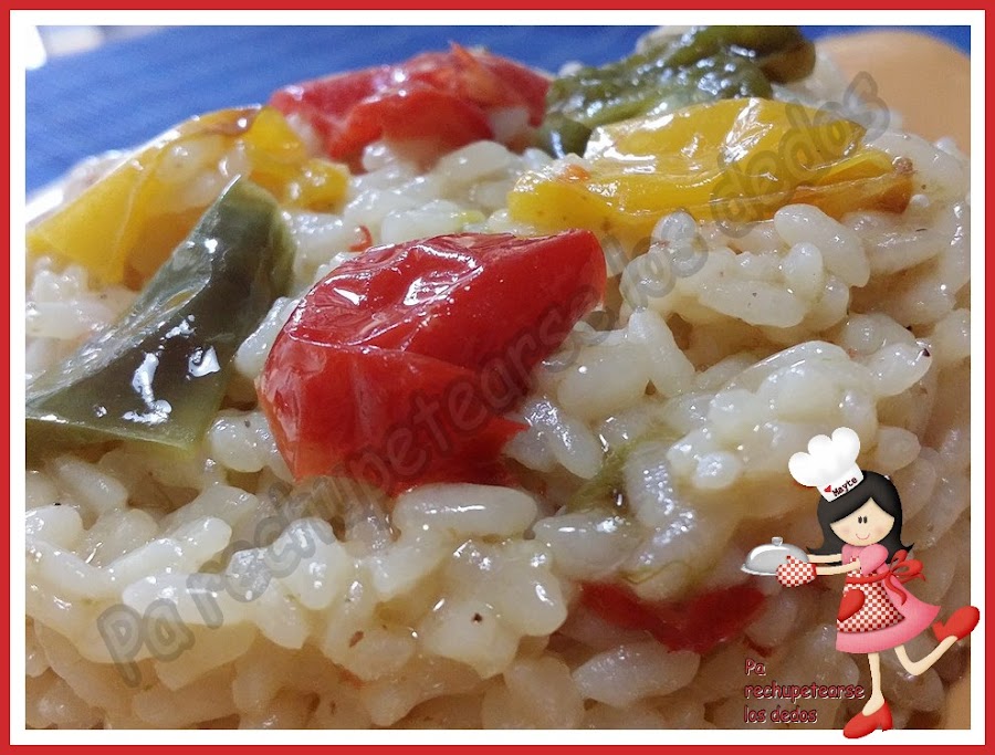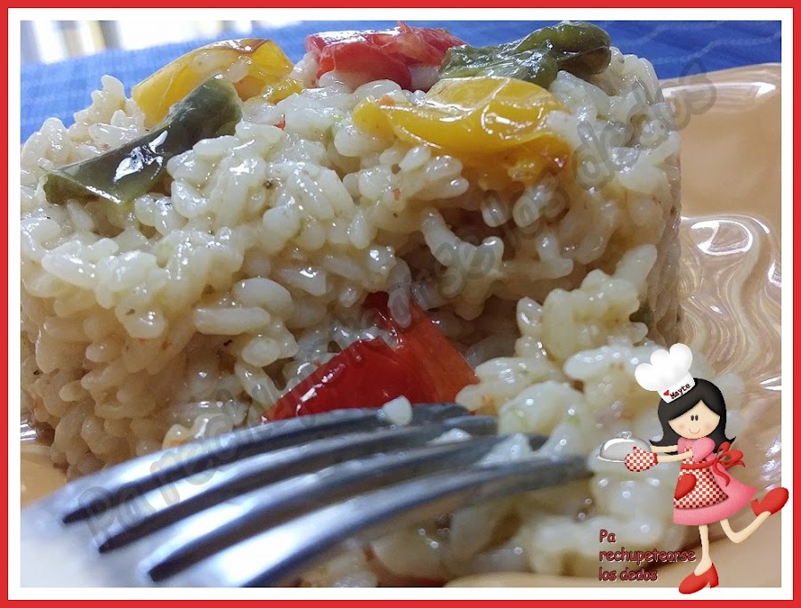 Como me gusta tanto el arroz, he decidido acabar con los pimientos de colores haciendo este arrocito...