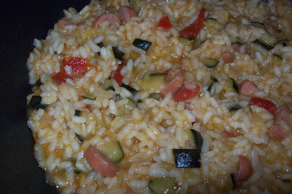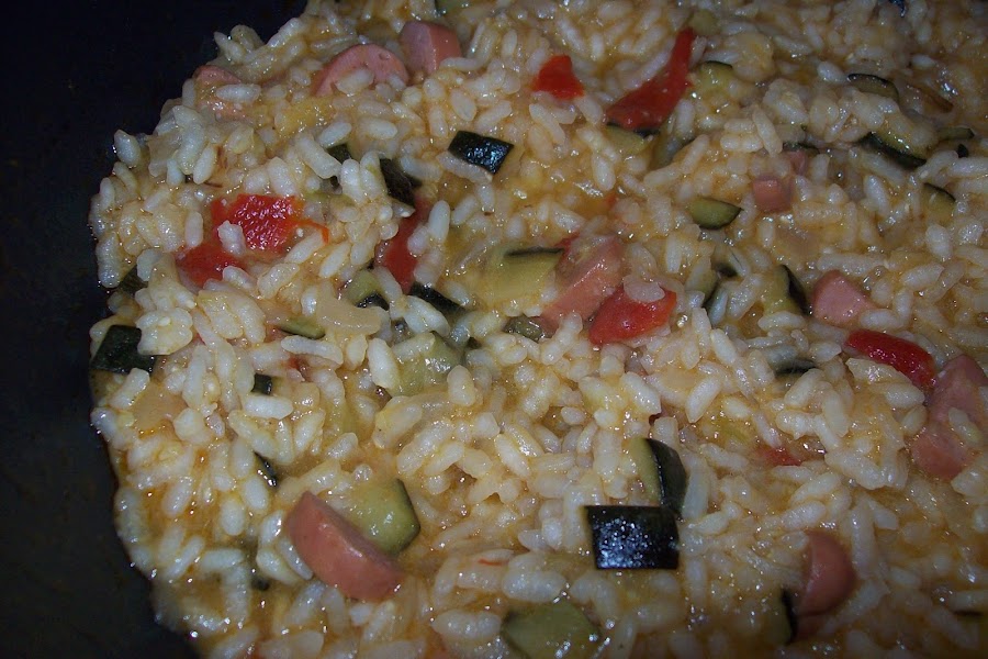 Así que hoy os voy a contar como lo comimos ayer. Le he llamado a mi manera ya que lo he hecho replegando un poco la nevera. Pero chicos el arroz es muy agradecido y le eches lo que le eches queda divino. Yo pienso que el truco está en el sofrito; lo preparas bien y seguro que queda para chuparte los dedos.