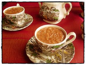 Lo de las gotas es porque cuando era niña siempre recuerdo a mi abuela preparando café cada vez que venía alguien a casa y con el café siempre sacaba una caja de galletas de esas surtidas que a diario no se abrían y una botella de algo que ella llamaba “unas gotas” ;). La verdad es que no tengo costumbre de ponerle licor al café como recuerdo que si hacian las visitas en mi casa, pero me ha dado la idea de añadirselo al arroz con leche y le ha dado un toque…. rico rico.