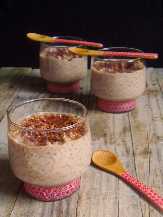 Retiramos del fuego, lo repartimos en cuencos o vasos y metemos a enfriar al frigorífico unas horas, antes de servir espolvoreamos con cacao en polvo. Espero que os guste.