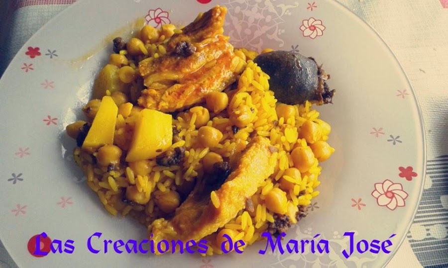 Sofreír todos los ingredientes menos el arroz y el caldo. Cuando este el sofrito lo echaremos en una fuente apta para horno. Agregaremos el arroz, el caldo, el colorante y pondremos el punto de sal, remover para que se mezcle todo. Lo meteremos en el horno a 180º unos 10 minutos, si no estuviera hecho el arroz lo dejaríamos mas tiempo y mas agua si hiciera falta.