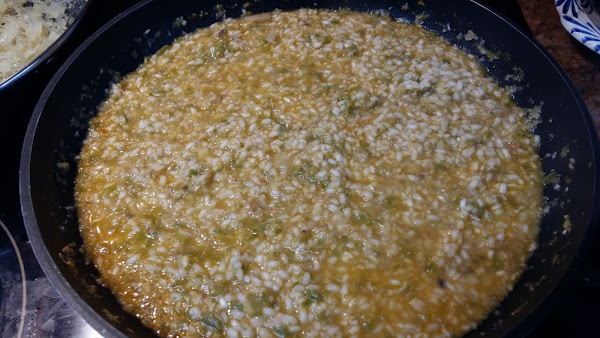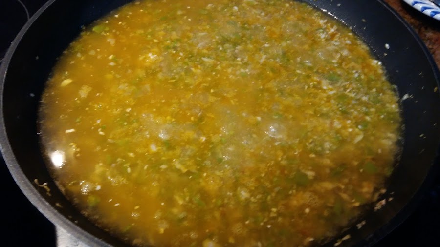 Añadimos 2 vasos de caldo de verduras y dejamos cocer durante 10 minutos.