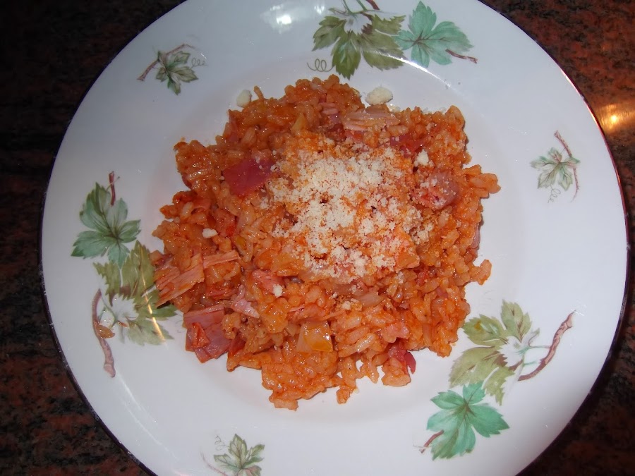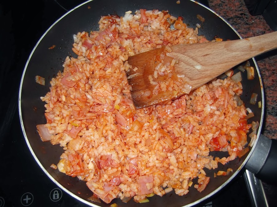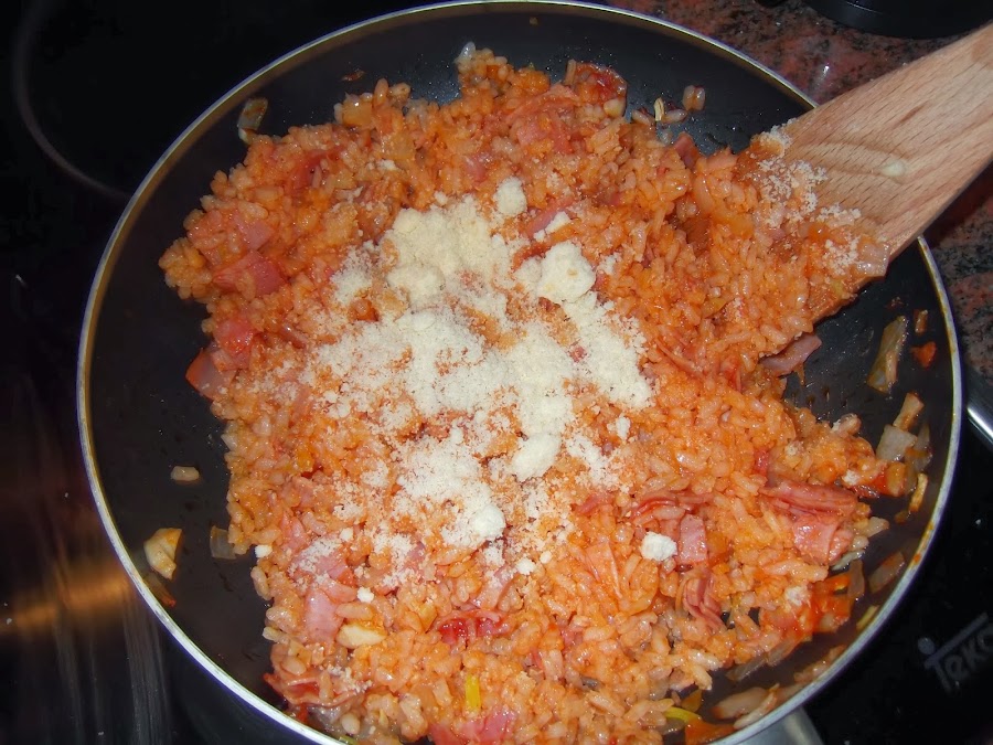 También podéis meterlo al horno y gratinarlo, pero en este caso debéis echarle más tomate, ya que si no el arroz se os podría quedar un poco seco.