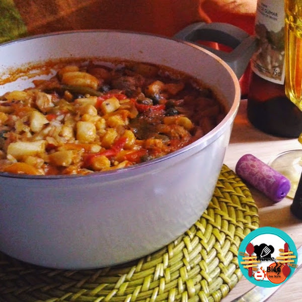 Utilice las sobras de una salsa casera a la que le añadi unas latas de atún natural, las sobras de unas empanadas de pescado y un poco de arroz para guarnición. Normalmente el arroz banda se cocina con arroz bomba. Pero os aseguro que nadie noto la diferencia, ni siquiera mi madre.