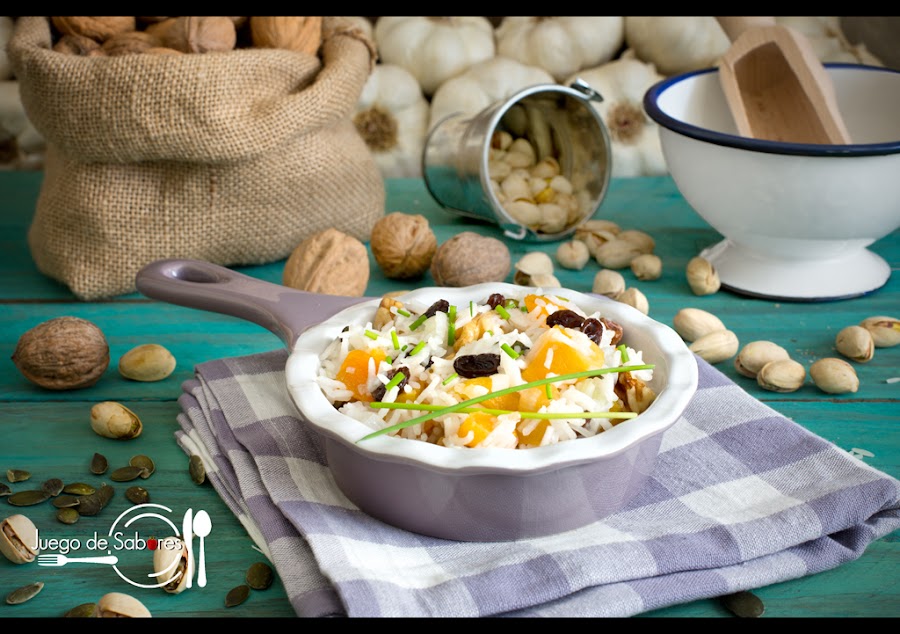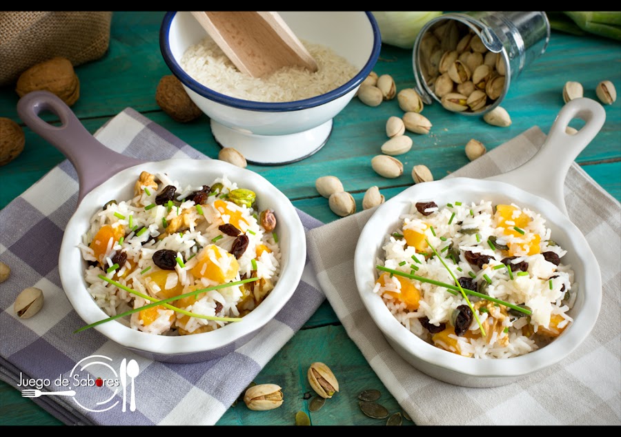Los grandes alimentos fundamentales de la humanidad son tres cereales: el arroz para el mundo oriental, el trigo para toda la zona del Mediterráneo y el maíz para buena parte de América. En el futuro no sabemos si la cosa cambiará y se comerán productos ahora desconocidos. El más consumido de estos tres cereales es el arroz porque constituye la base de la alimentación de países superpoblados como China, Japón, India, Tailandia, Vietnam… En una palabra, lo que conocemos como Extremo Oriente. Para sus habitantes el arroz es el equivalente a nuestro pan. Lo hay de grano redondo, de grano largo, integral y salvaje. Dentro de las variedades de arroz de grano largo hay el basmati, ideal para hacer ensaladas porque después de su cocción queda muy suelto. Sobre la base de este tipo de arroz hemos incorporado unos frutos secos (nueces, pistachos y pipas de calabaza) así como uvas pasas y orejones. Un plato fácil, sencillo y nutritivamente acertado.