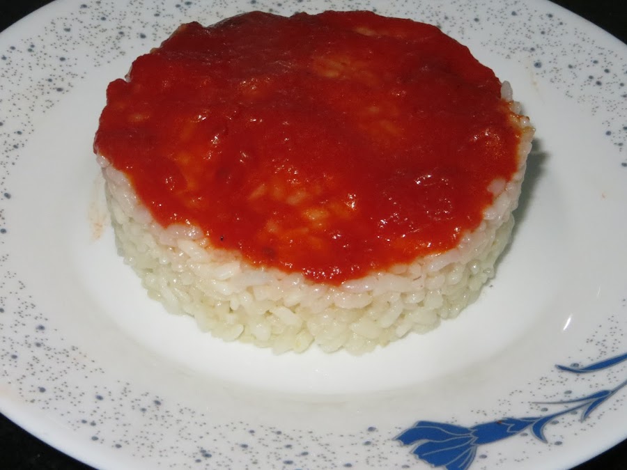 Lo salamos y lo volvemos a meter al microondas durante nueve o diez minutos, sacamos dejamos reposar otros diez minutos y ya está listo para comer. En este caso como era para mi peque lo acompañé con un rito tomate frito.