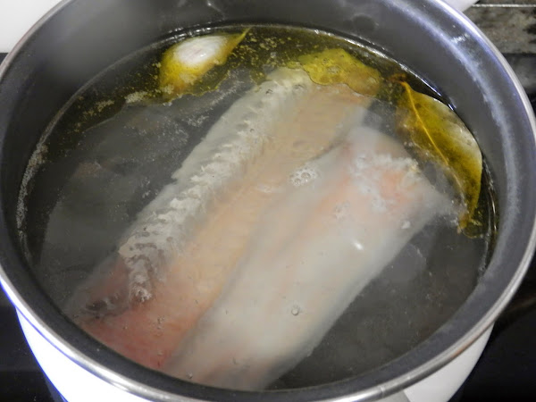 Cuando empiece a hervir, añadimos la merluza y cocemos unos diez minutos.