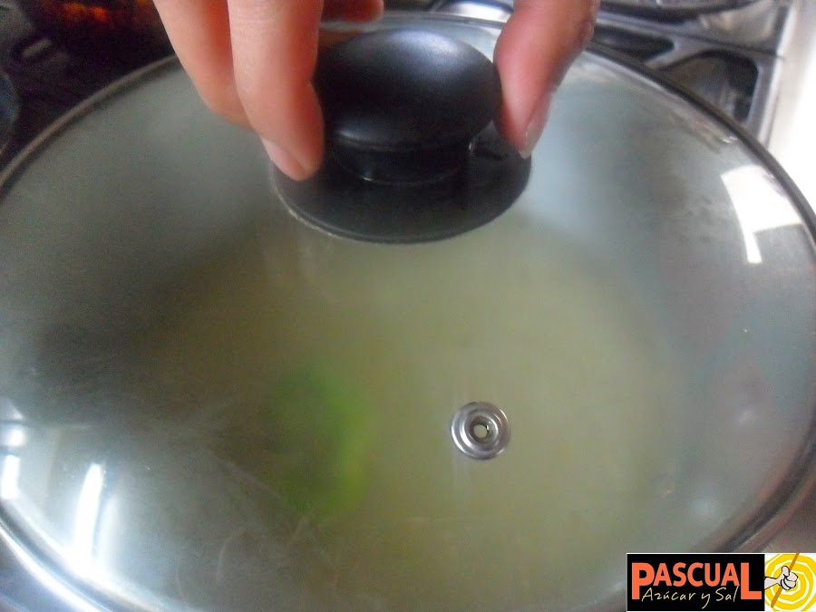 ·Tápelo y manténgalo a fuego medio-bajo, hasta que haga ojos. (se formen unos hoyos)
